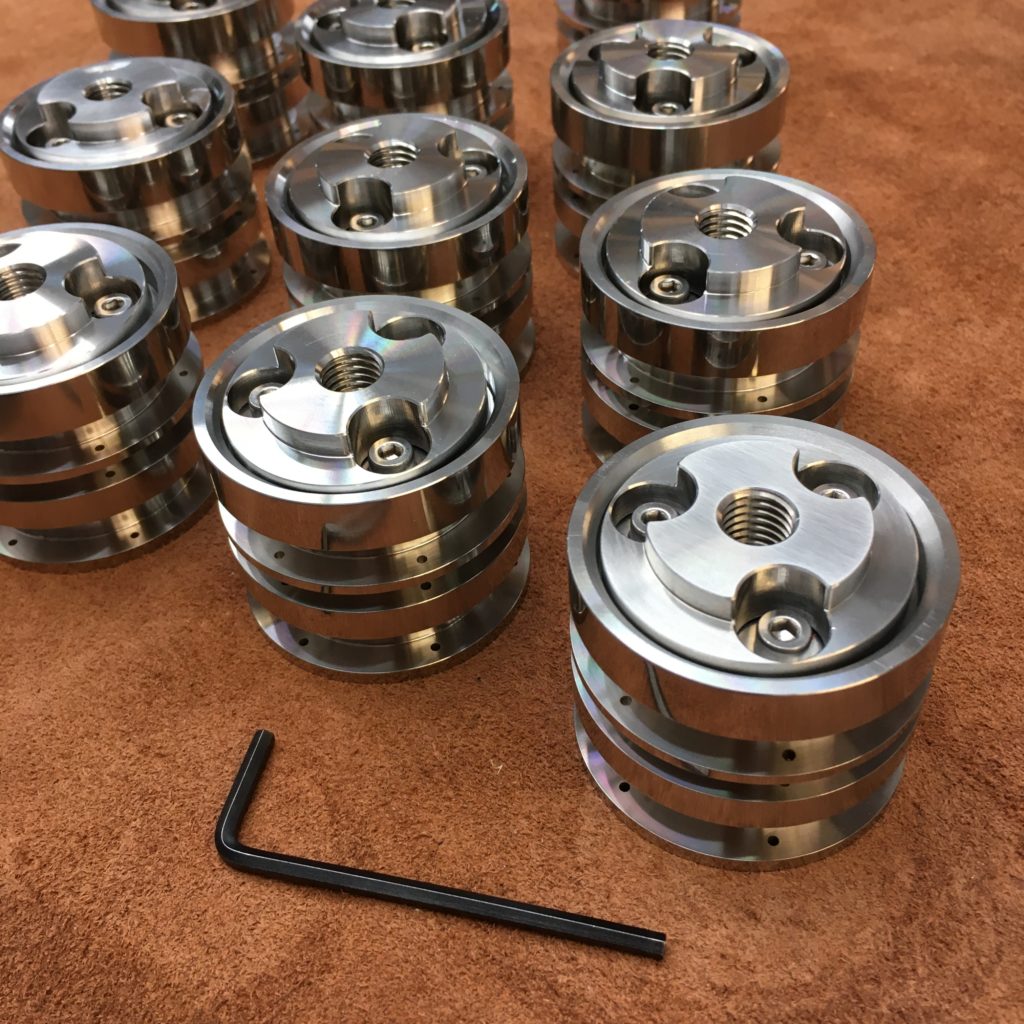 The exterior of the massive CNC machined group is hand polished to a mirror luster and its cylinder wall diamond honed to the optimal surface finish in a highly specialized shop that made aircraft engines in World War II.
