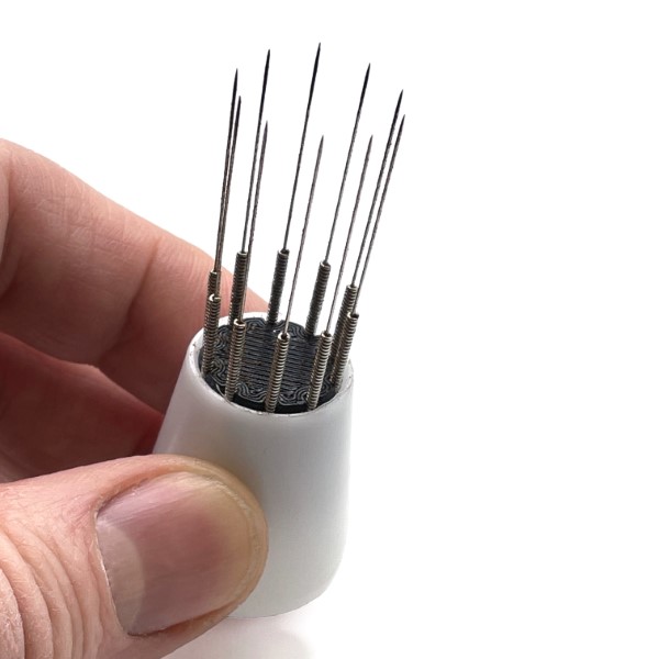 The Scace device is equipped with a temperature probe: a bare type K thermocouple with minimal thermal inertia. Minimizing probe thermal inertia is key to obtaining accurate results in a rapidly changing thermal environment. A probe with large thermal inertia will cause the readings to lag behind actual temperatures and may absorb enough heat to affect the process and distort the corresponding readings. Similarly, the device must have a sampling rate high enough to record any transient peaks.