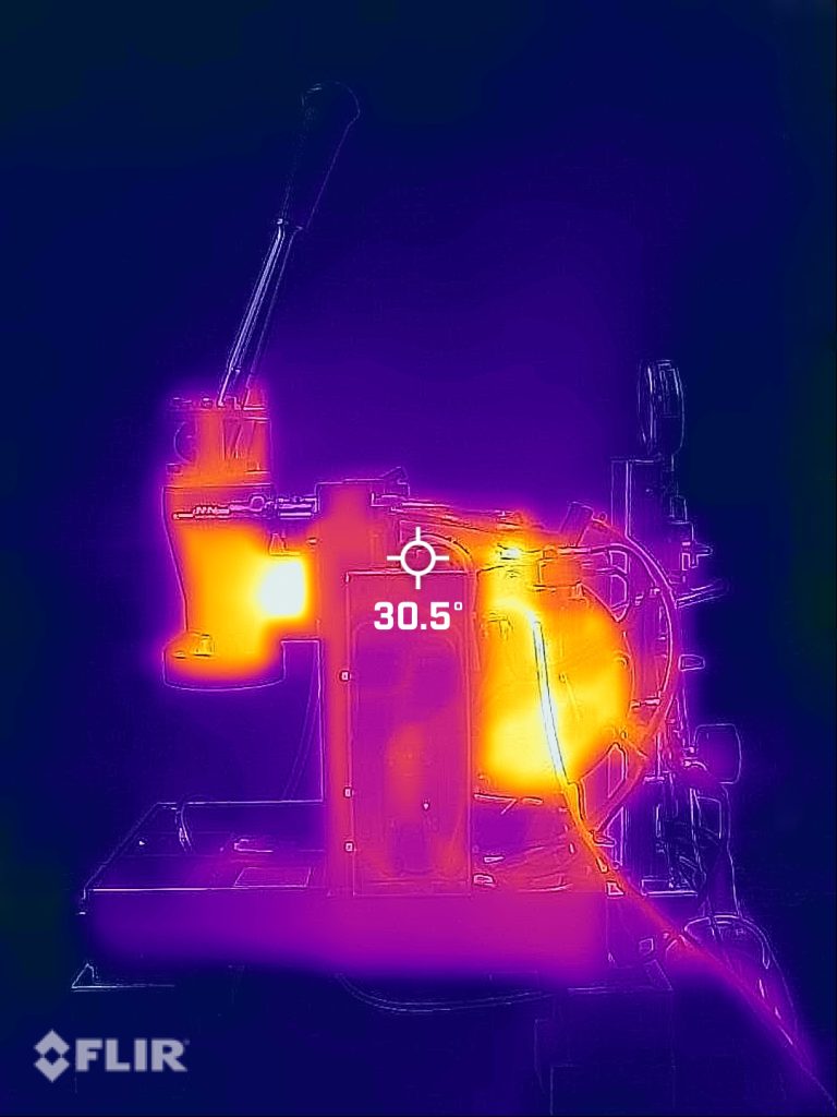 The group, which has a large thermodynamic mass, reaches a thermal equilibrium between the boiler temperature (from 118-130°C) and the ambient temperature of the surrounding environment (20-25°C). The temperature of the group is not uniform, rather it is graduated from hottest, at the point closest to the heat exchanger, to coolest, at the point on the external surface furthest away from the source of heat. At a boiler temperature of 120°C, the temperature of this extremity was measured at 53°C. Thus the channels through which the brew water passes and the brew chamber itself lie somewhere on this thermal gradient. Though difficult to quantify, the average temperature of the group is considerably lower than the generally accepted typical brew temperature of 93°C for espresso. Consequently, the group will draw away some heat from the brew water as it enters the brew chamber. The purpose of this document is to characterize the thermal behavior of the group, i.e. to determine its “thermal signature”, and to measure the offset between boiler temperature and brew temperature “at the puck”, i.e. the temperature of the water that reaches the top surface of the coffee puck during an extraction cycle.
