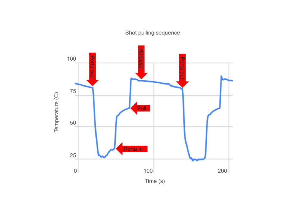 Another way to look at the data is to look at boiler pressure, which corresponds directly to boiler temperature and can be read directly from the manometer on the front of the machine.