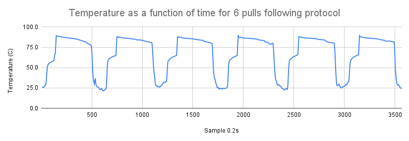 The Scace device was used with a data logger to record temperature during a series of Pulls at various boiler Setpoints on a Lapera DS3.