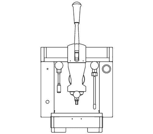 - Lapera-built lever brew group with articulated, self-centering stainless steel piston