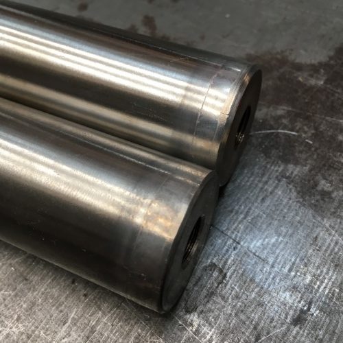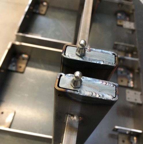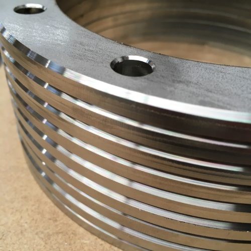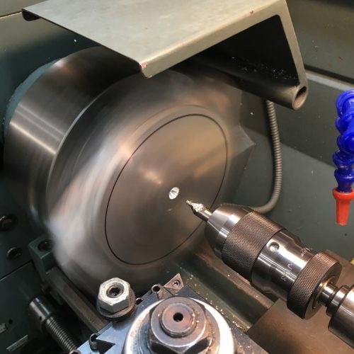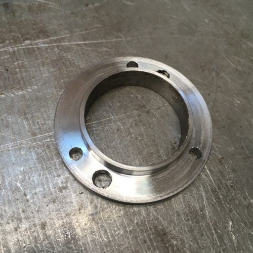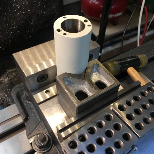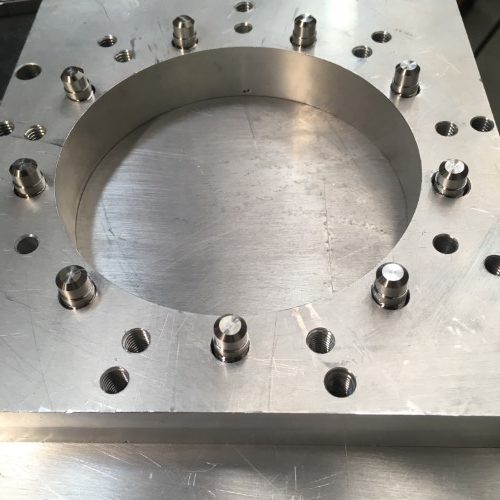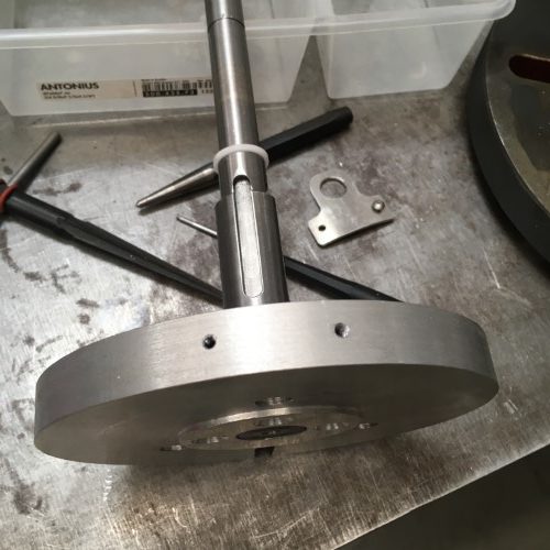 First things first: the bolt rings that hold the end plates and seals in place – important, you know, for keeping the water in the boiler. For this, of course, we built a jig. And a very fancy one at that. The shoulders of the bolt studs need to be held up against against the ring from the underside – so the pockets that they sit in are spring-loaded.
