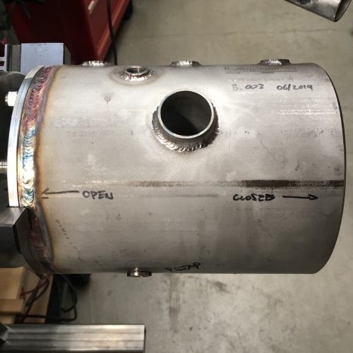 The next step is to complete another sub-assembly – or sub-weldment: the heat exchanger (HX). The HX is comprised of a 316L stainless casting and a capped 316L tube. The casting replaces a far more complicated weldment which was a composite of five separate parts. Simpler is (almost) always better.