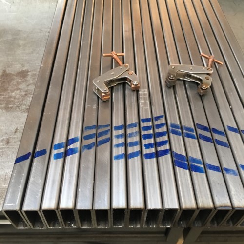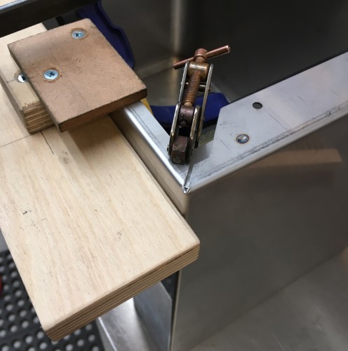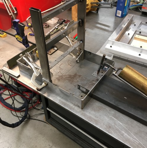 This jig does double duty for the fairly complex task of alignment and clamping for positioning the bolt rings at both ends of the main boiler tube.