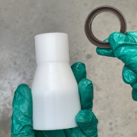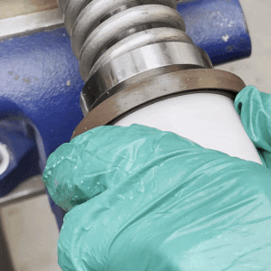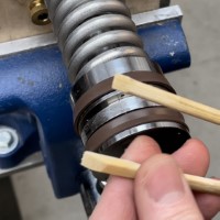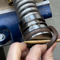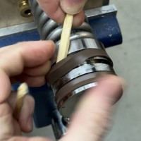 Lightly grease the exterior of the piston tool and the seal. Making sure to orient the V seal in the right direction (with the lips pointing to the small end of the tools), slide the new seal onto the tool.
