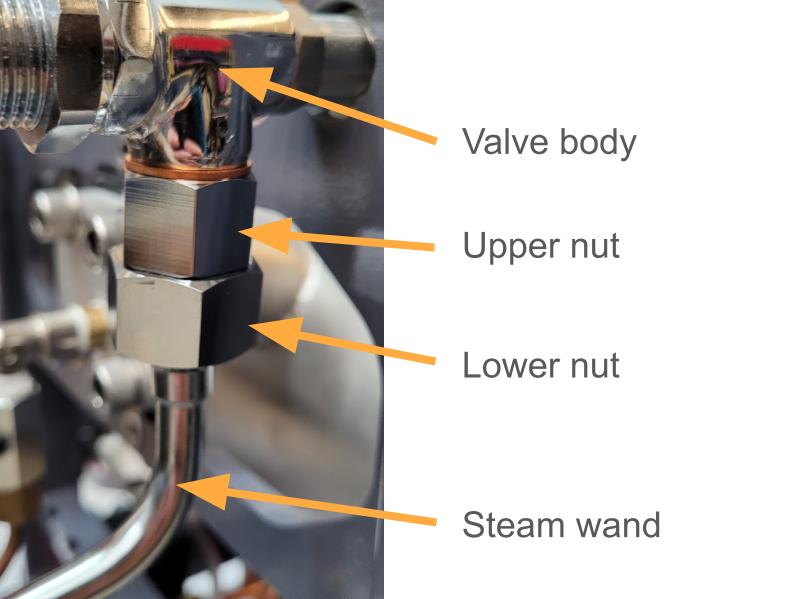 ⦿ Re-tighten the Lower Nut by hand until the Steam Wand has the desired amount of resistance.