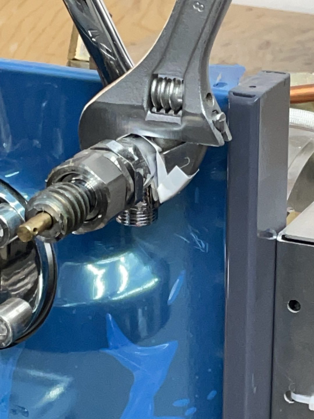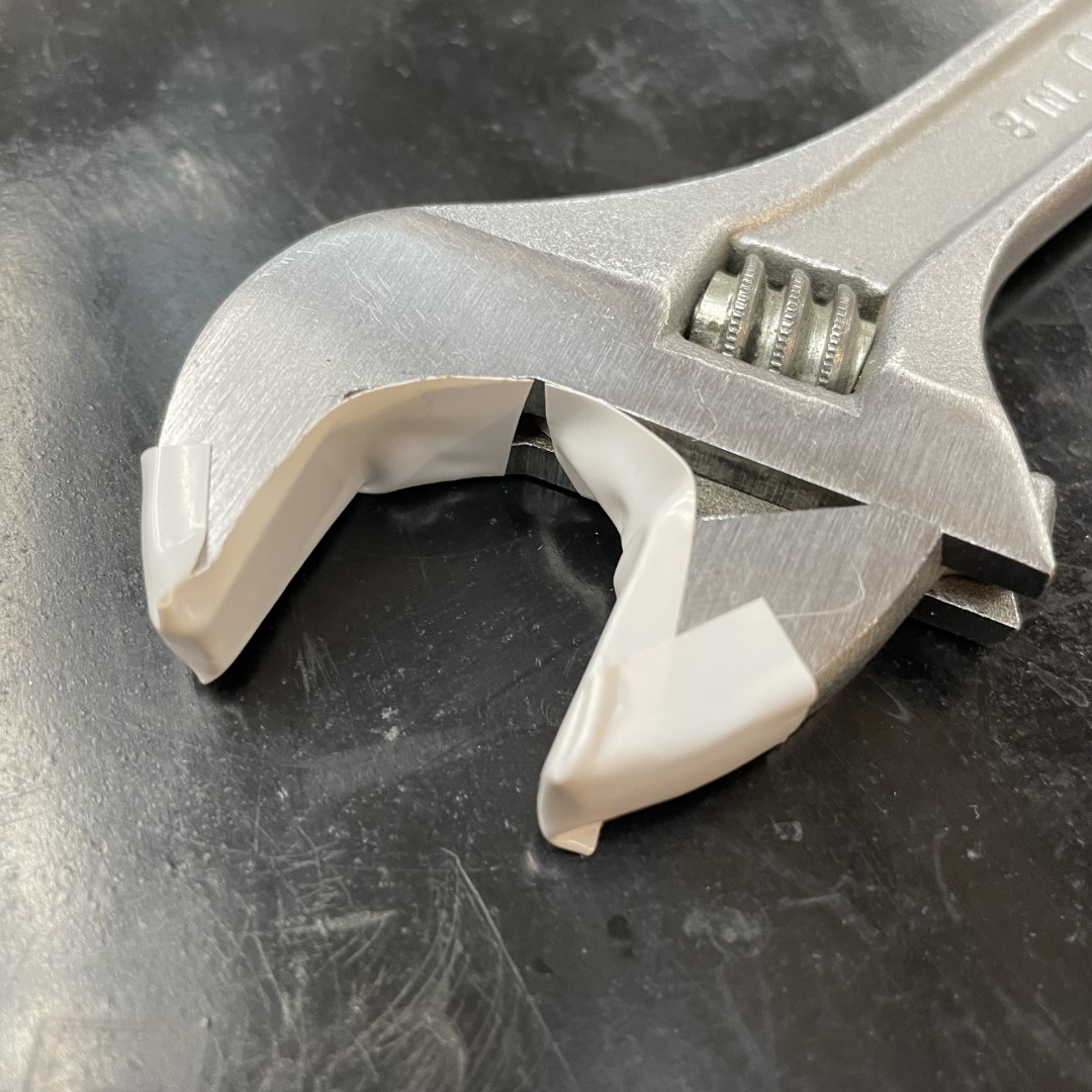 Add at least one layer of electrical tape to the jaws of an adjustable wrench