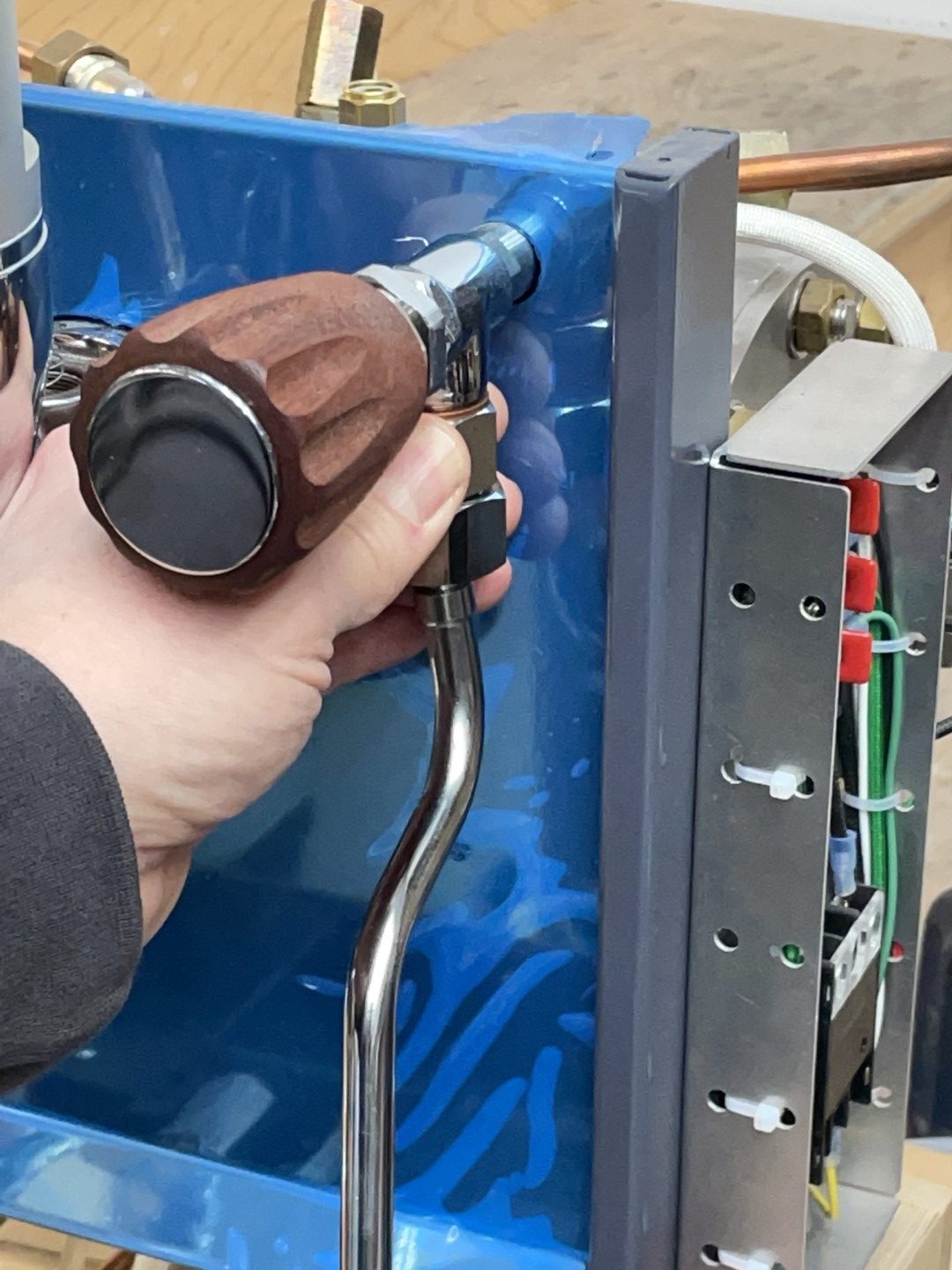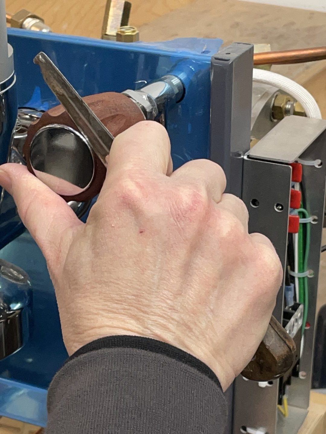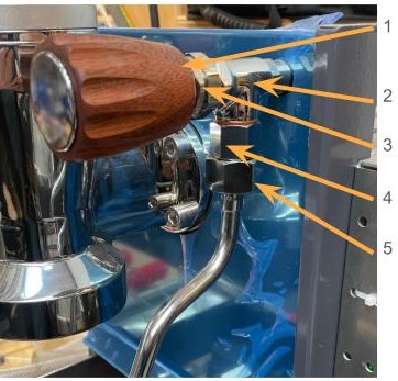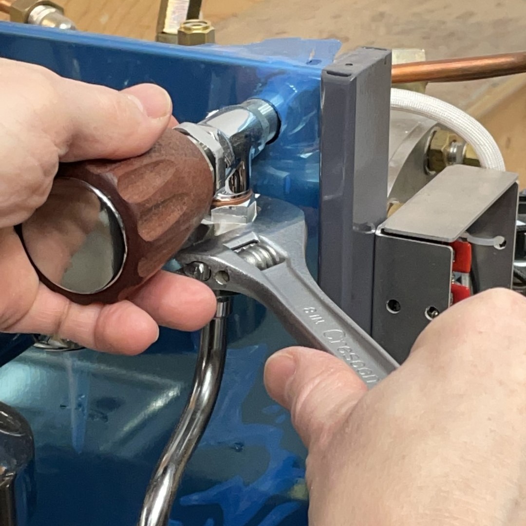 - Unscrew the entire assembly by quarter turns, rotating the steam wand in the opposite direction.
