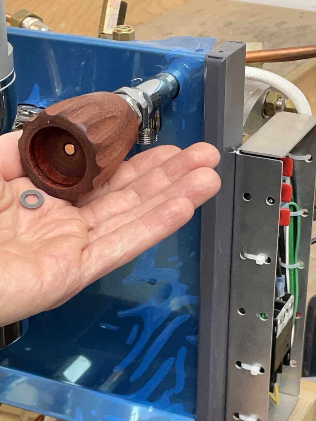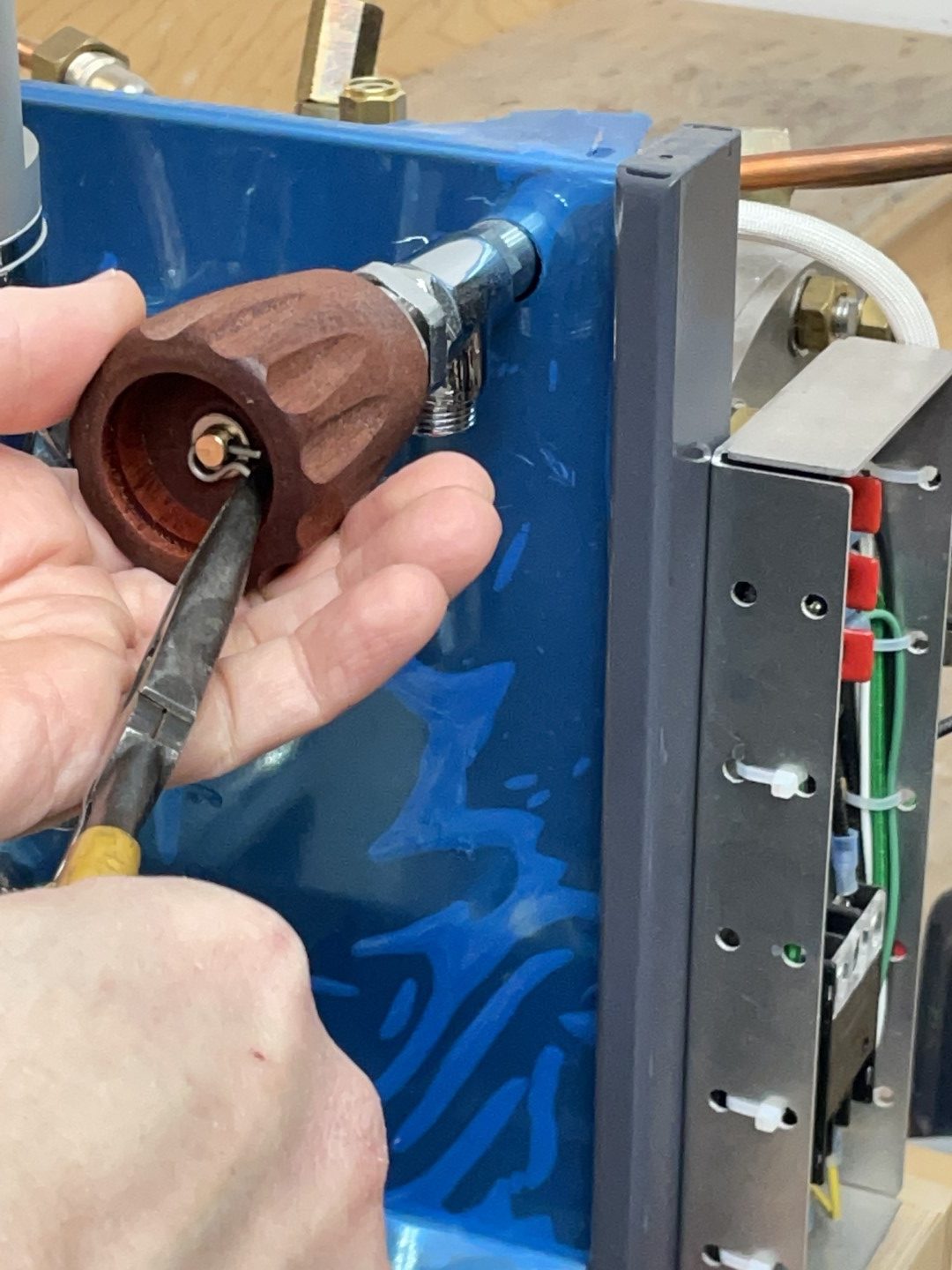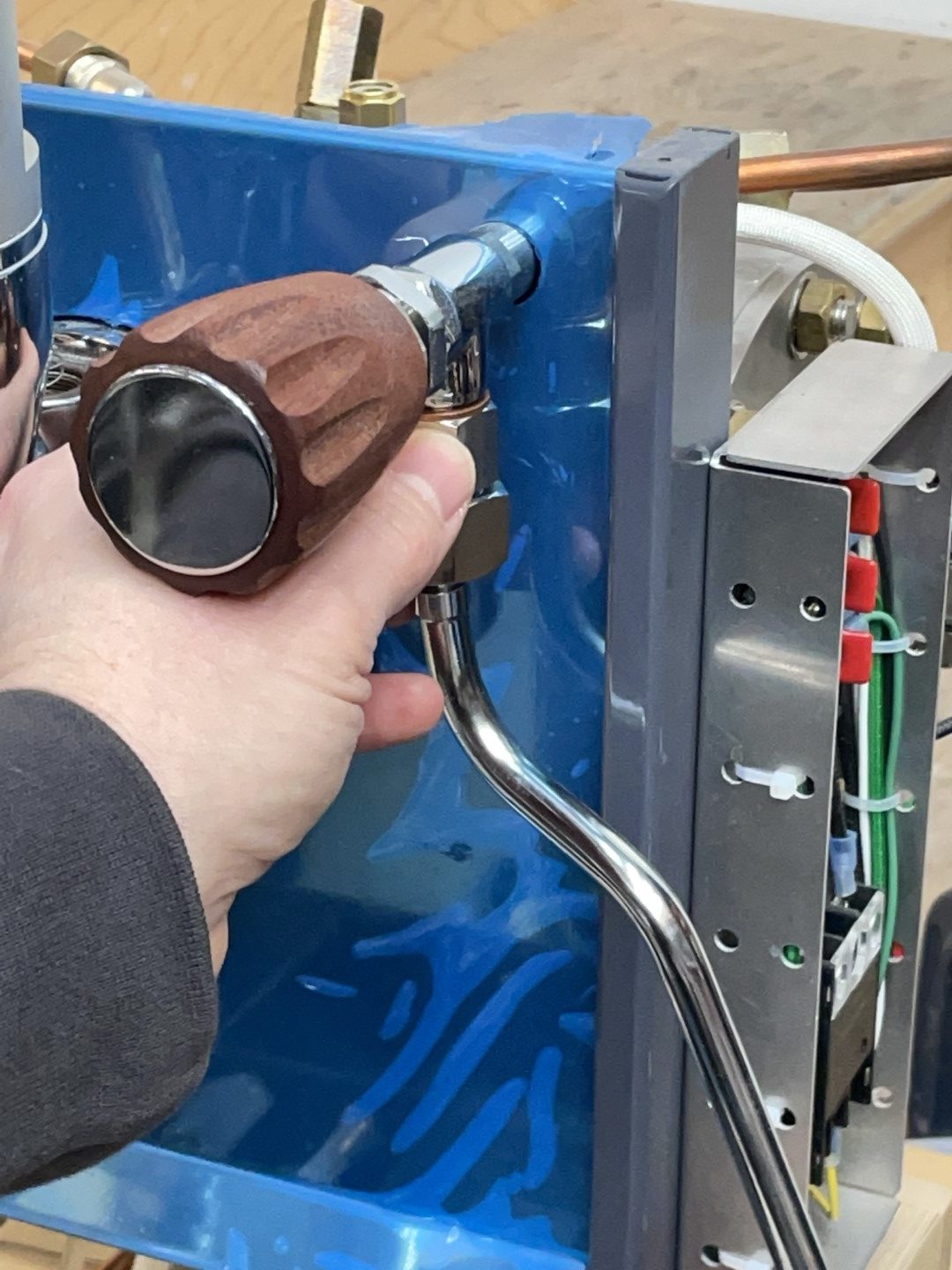 - Unscrew the entire assembly by quarter turns, rotating the steam wand in the opposite direction.
