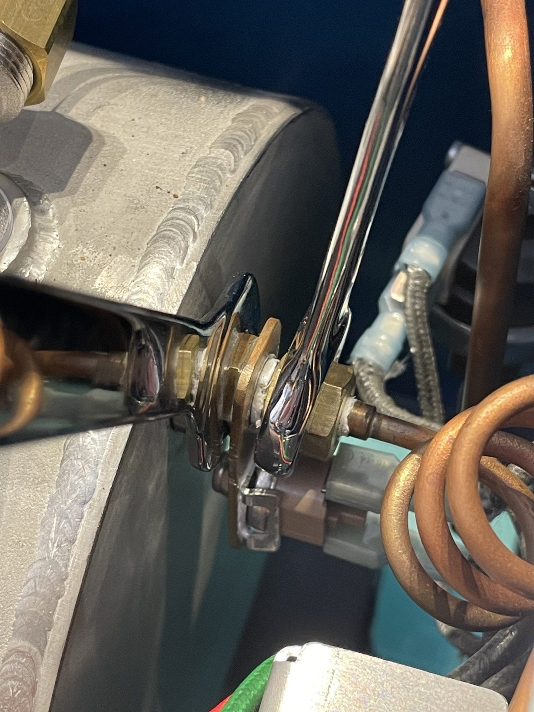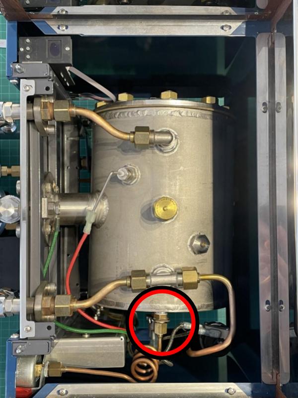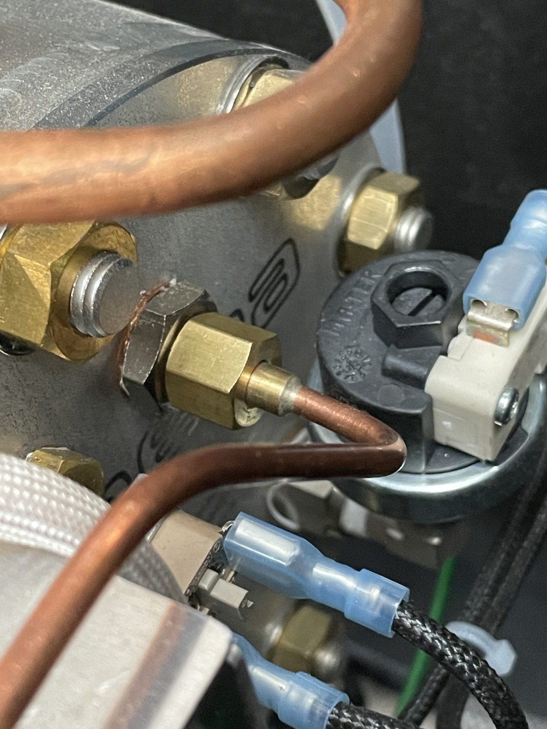 1st and 2nd Edition – Locate the connection of the copper manometer line to the boiler.