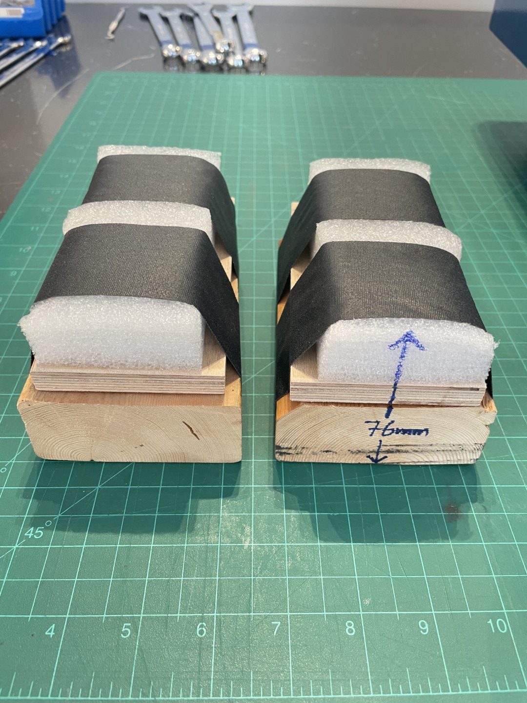 The blocks can be as simple as a stack of corrugated cardboard wrapped with masking tape. The height is the important part.